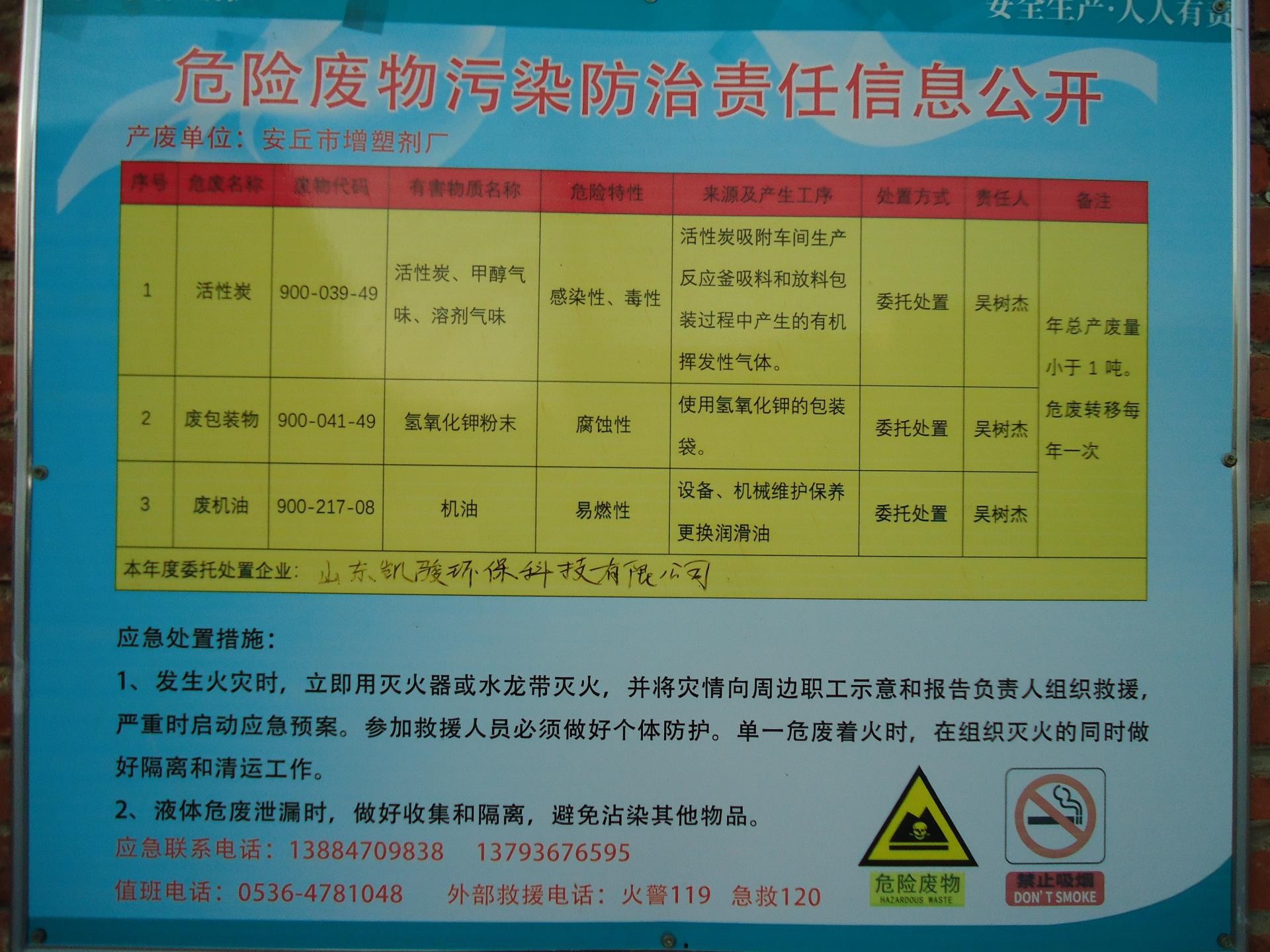 關(guān)于安丘市增塑劑廠危險(xiǎn)廢物污染防治責(zé)任信息公示內(nèi)容